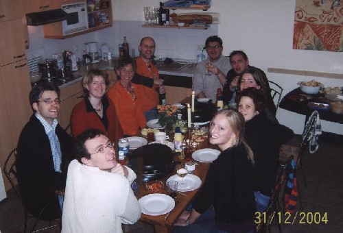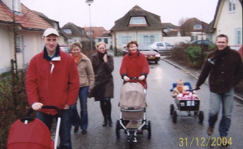 Domburg 1. Huisvesting Twee kersverse geboortes in het laatste kwartaal van 2004 maakten een lange reis onwenselijk en dus werd de nostalgische boerderij vol verassingen in Oostenrijk ingeruild voor twee hypermoderne bungalows in Zeeland. Het organisatiekoppel Johan & Ingrid maakte eerder in het jaar reeds een verkenningsreis en concludeerde dat Domburg aan alle voorwaarden voldeed. Ondanks de kindvriendelijke entourage ontbraken Ramon & Hetty; door hen werd sneeuw op de bestemming geëist waarna ze met schoonfamilie naar Ellmau afreisden. De schuld zou worden afgekocht met een vuurwerkpakket, dat helaas nog steeds niet is ontvangen. Een agressieve griepaanval vertraagde de aankomst van Marcel & Agnes met een dag. Ze zouden het hele weekend deze tegenslag niet meer te boven komen. 2. Activiteiten Daar waar in Breitenbach (no kids) het gezelschap het van elkaar moest hebben, werd hier de aandacht toch vooral opgeëist door het nadrukkelijk aanwezige kleine grut. De dag werd ingevuld met kinderwagenwandelingen naar supermarkt, dorpskern en uiteraard het strand. (Over)vermoeidheid bij enkele aanwezigen was eveneens niet bevorderlijk voor het ondernemen van inspannende activiteiten. Wat rest zijn herinneringen aan het inmiddels klassieke gezelschapspel Koehandel (de introductie van Osso-boeko) en de eveneens tot traditie verheven manvrouw competitie. Dit keer uitgevochten middels Triviant, en uiteraard trokken de superieure mannen de winst naar zich toe. Een partijtje voetbal op een net ingezaaid maar drassig veldje ontaarde in een modderbad en werd door conditiegebrek van Sietse vroegtijdig stopgezet en niet meer hervat. 3. Eten Qua eten is de traditionele gourmet-avond op de 31e het vermelden waard, zij het alleen door de introductie van de Gourmetkoekoek! 4. Foto's