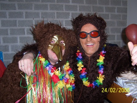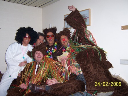 2006: De Beren III Een jaar vol afhakers. Marcel en Johan maken de keuze voor gezin in plaats van vrienden. Eerstgenoemde schuift overigens nog wel aan bij het begin van een nieuwe traditie: de gezamenlijke lunch op vrijdagmiddag in restaurant St. Petrus te Hilvarenbeek. Hans’ identiteitscrisis vindt hier zijn oorsprong en Ramon neigt naar kroketten, omdat ‘de menukaart van St. Petrus al drie keer per dag in Parijs wordt genuttigd’. Eddie ziet in Marcel de nieuwe Walter Grönloo die op zijn beurt zenuwachtig de lunch uitzit vanwege een ‘afspraak’ in Maarssen. De berenpakken worden ’s avonds door de meesten geprolongeerd en aangevuld met Hawaï rokken om een Balou de Beer imago te realiseren. Helaas waren de rokken te klein of de buiken te groot en ‘hinderlijk’ bij menige plaspauze. Jan W. heeft geen berenpak en probeert een slap aftreksel van een Kung Fu pak. Naar eigen zeggen, de volgende dag, niet voor herhaling vatbaar. Ramon verzoop net niet in het konijnenpak van Marcel en Jan B. stuiterde als vanouds door Polly na een zwak half uurtje. Voor de zaterdag veel verwachte, maar ook enkele onverwachte afvallers. Klaas geeft de voorkeur aan kindercarnaval (?) en Hans wordt in recordtempo ziek. Eddie & Sietse hijsen zich na een iets te snelle gyros nogmaals in de berenpakken en hebben een verrassend leuke avond met zebra’s en andere dierentuinbewoners. Verder is de receptie strontflauw van al die auto’s om het huisje en schakelt de kampwacht in. Enkele hoogtepunten: Jan B. droomt dat Sietse haarimplantaten krijgt, Hans strandt in het zicht van de haven door iets te lange rij en Eddie beleeft een persoonlijk hoogtepunt: 'ben jij een Zebra?' Da's weer eens wat anders dan 'ben jij Klaas?'.
