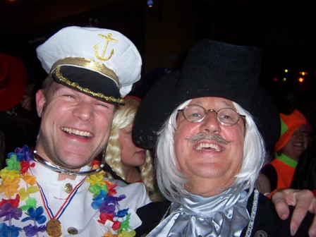 Op zaterdag verlieten Jan & Jan vóór 12.00 uur met gierende banden het park en onderging Klaas zijn primeur door ook in het huisje te overnachten. Breda moest het worden en Breda werd het ook. Door een enorme menigte op straat én voor de ingangen begon de avond uiterst stroef. De avond was voor 01.00 uur nog niet boven de 4+ uitgekomen doordat we bij de één als haringen in een ton stonden en de ander zó ongezellig was dat we elkaar vragend aankeken en stilzwijgend afvroegen waar we in terecht waren gekomen. Bruxelles en Liquid zorgden voor de ommekeer! Baldadig werden excentrieke figuren voor de camera gesleept. Smurfen, travestieten, schildpadden en 50+ zorgden voor een ‘gezellige context’ en voorkwamen dat de avond als een nachtkaars uit zou gaan. Óók in Breda hebben we de tl lampen (gelukkig) aan zien gaan. Aan dit weekend zal tijdens menig werkoverleg met een glimlach worden teruggedacht.
