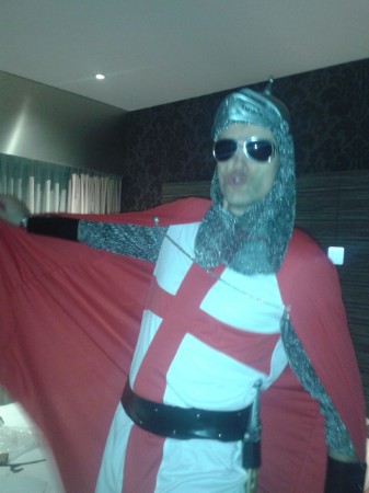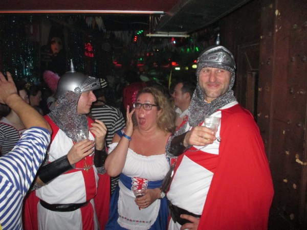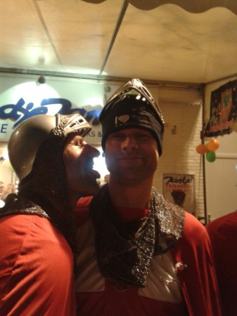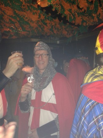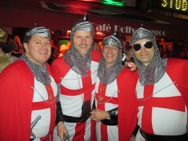 De pimp's keren niet terug. Lang wordt gezocht naar een passende outfit, en de keuze valt op een kruisvaarders annex tempelridders-kostuum.