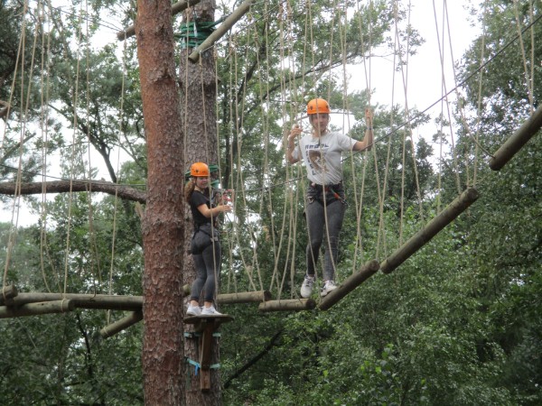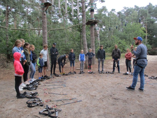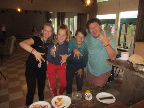 Papa Weekend 2020 Al anderhalfjaar geleden geboekt door Eddie (en Hans), deze accommodatie langs de A28 bij Wezep. Gelukkig dat de bomen het zicht op de snelweg wegnamen. Het weer zat niet mee dit weekend, zodat de vergelijking met het eveneens schoolklasvriendelijke Costa del Zeumeren snel gemaakt was. Het klimbosje maakte echter veel goed en de sfeer was gelukkig vooral 'blij dat we er toch weer zijn' dan 'wat een deerniswekkende zooi is het sanitair'. Want corona gooide bijna roet in het eten. Of het helemaal binnen alle RIVM richtlijnen viel dit weekend was twijfgelachtig, maar geen besmettingen en dus niks aan de hand. Jan W. en Klaas kozen ervoor de nacht over te slaan, wat jammer was maar uiteraard gerespecteerd werd. Verder lekker weekend: klimmen, voetballen, volleyballen, een heuse kubben-competitie en als klap op de vuurpijl het Moordspel. Waar enthousiast aan werd meegedaan, maar waarvan niemand de toch wat ingewikkelde plot echt wist te ontrafelen. Nienke won, ook tot haar eigen verbazing. En verder dobbelen, vijven, lamzakken en Rocketshot. We misten Evy (Amerika) maar voor de rest was het als vanouds: er zit nog altijd geen sleet op de formule.