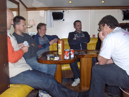 De zaterdag verloopt in uitstekende sfeer met goede en diepgaande discussies over een nieuw op te zetten leergang ‘De goedgelovigheid van een vrouw gaat ten onder aan de hebzucht van mannen’, zowaar wat economiediscussies (Fortis!) en uiteraard een hoop onzin ('krrrrrrrrrrt ijsberg ijsberg krrrrrrrrrrt'). Eenmaal aangelegd in Amsterdam doden we de verloren uurtjes richting stappen met een traditioneel potje Koehandel, onwetend van het feit dat op dat moment naast ons een Schotse tourist van de boot zou vallen en verdrinken. Taxi's brengen ons naar het Leidseplein, alwaar Ramon snel kiest voor het Cooldown Café, en dat blijkt een schot in de roos. Jan W., onvrijwillig aangewezen als ober omdat hij te laat was, sluit direct vriendschap met een (interne) propper.