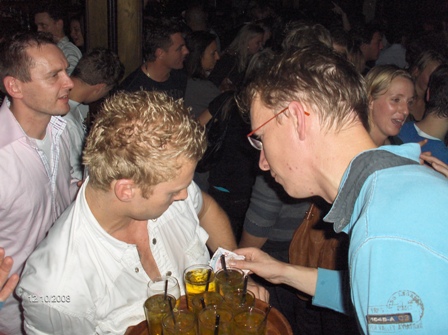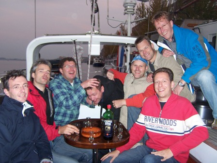 Mede daardoor (?) wordt het een prima avondje. Ramon wil graag met Arthur Numan op de foto ('Hee Ray!!! Geen probleem ik wacht wel effe!!') maar fotograaf Marcel weigert de foto te nemen (‘Heb ik al’). Jan W. bestelt om onbegrijpelijke redenen ook om vijf uur en half zes nog rondjes wodka-jus, waarvan er vermoedelijk acht direct worden weggezet. Het is gelukkig Jan zelf die hiervoor op zondagmorgen de hoogste tol lijkt te betalen. Hans investeert veel tijd in vriendje Klaas, maar kan de schijn van eigenbelang toch niet helemaal wegnemen. En de rest doet zijn ding, als altijd. Hoewel menigeen niet nuchter meer is (‘toeter als een garnaal’), staat iedereen toch zonder al te veel problemen op. De boot is dan overigens al halverwege Muiden. Daar leggen we nog even onnodig aan, om vervolgens met een heerlijk zonnetje en een zeer geringe wind terug te zeilen naar Hoorn. Kortom: een top pre-oriënterend weekend.