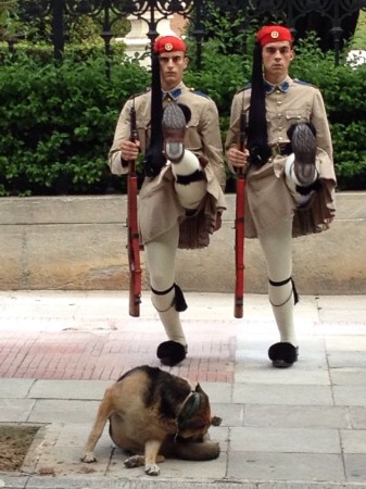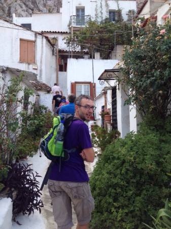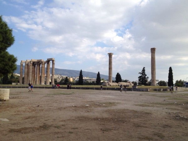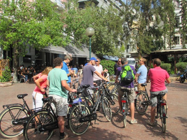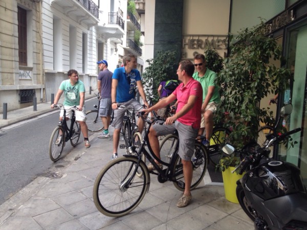 Na een bezoek aan het strand wordt Athene op vrijdag verkend per fiets, met een maar moeilijk verstaanbare leerlinggids. Genoeg te zien uiteraard in Athene, en dat doen we dus ook (Olympisch stadion uit 1896, de Tempel van Zeus, Evzone-wachters). En natuurlijk de Akropolis. Waar we om een of andere duistere reden wel omheen fietsen, maar die we niet bezoeken. Wat we wel doen: eten met uitzicht op de Akropolis, al wordt dat door elke reisgids met klem afgeraden.