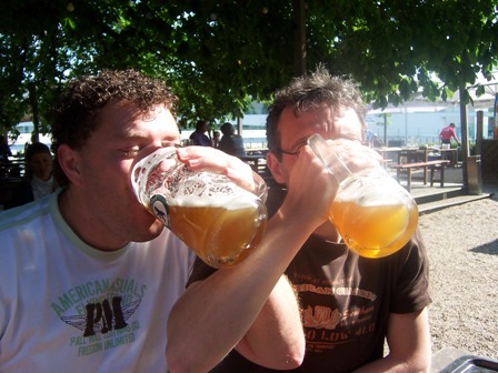 De tweede avond was, inmiddels als vanouds, een stuk minder. David Hasselhoff in homotenue, geklooi met polsbandjes om entreegelden van een euro of vijf te voorkomen en de guerrilla-taxi zijn blijven hangen. De fietsgids op maandagmiddag blijkt daarentegen wel een goede zet. Vooral de Biergarten halverwege wordt gewaardeerd, hoewel de gids maar moeite heeft met én zijn liter bier, én de uitleg van Hans inzake ‘drie vingers in de neus’. Ook de Vietnamees na afloop bevalt goed.