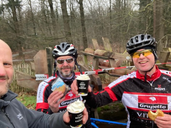 MTB Club De Gelderse Vallei 2.0 Eind 2020 wordt de MTB Club nieuw leven in geblazen. Marcel en Johan waren al fanatieke fietsers, Sietse is inmiddels vijftig en bekeert zich daarom tot de fiets (de hybride) mits er koffie is, en Jan B. en Eddie poetsen hun oude MTB maar weer eens op voor een eerste ritje in Heerde. Dat bevalt goed, Heerde blijkt niet de uitdagenste track van Nederland maar het is er mooi, het weer is goed en de koffiekoeken van Eddie smaken uitstekend. Het smaakt naar meer. Jammer dat Jan B. na het rondje Harderwijk zijn auto - ondanks alle waarschuwingssignalen die op een auto maar mogelijk zijn - achteruit tegen een paal zet. Daar kan de fietsendrager met MTB die erop zit niet zo goed tegen en in coronatijd zijn MTB's volledig uitverkocht. - Heerde (rating 2,14): Eddie, Jan B., Johan, Marcel en Sietse.