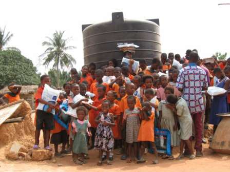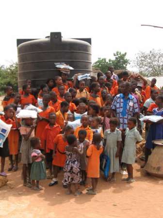 Het zou niet het laatste citaat zijn. Hoe dan ook, de polytank (opslagtank) van 10.000 liter kostte ongeveer 700 euro. Volgens Jochem zou het ervoor zorgen dat de mensen altijd water hebben, hetgeen het mooiste en meest bruikbare cadeau is wat zou kunnen worden gegeven. Dat leek ons ook: ruimhartig schonken we gelijk het volledige bedrag.