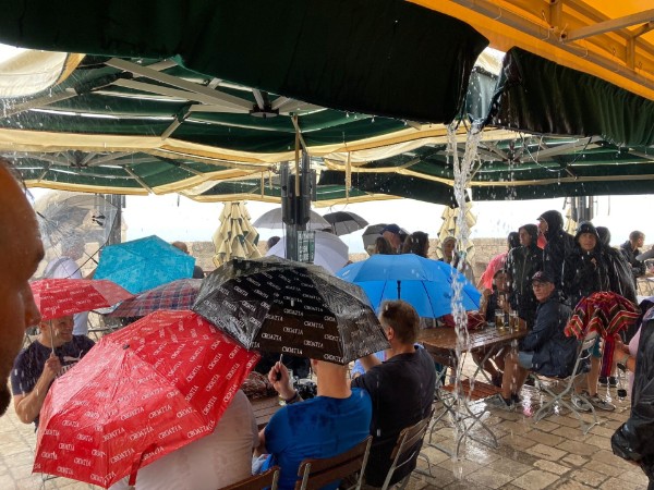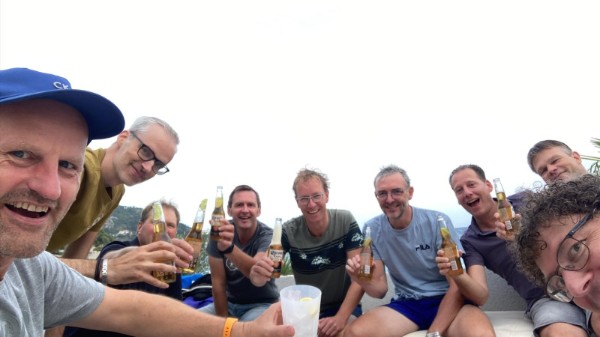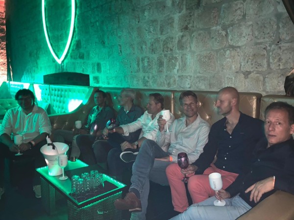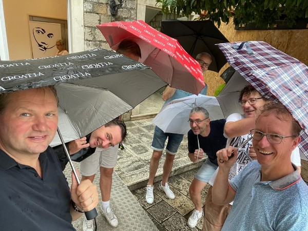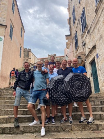 Dubrovnik 2022 Extreme rijen op Schiphol, maar gelukkig vertrokken we van Rotterdam naar Dubrovnik. De stad van Game of Thrones. Zonzeker, behalve dan op de dagen dat wij er waren. Het helaas tegenvallende weer zorgde voor het schrappen van de kayak- en snorkelactiviteit. In plaats daarvan wandelden we veel, op de stadsmuur met gids Antje, binnen de stadsmuur, over de walk of shame en door de vesting. En elke keer 207 treden omhoog naar huis, dat ook. En dat met twee geblesseerden: Jan W nog niet hersteld van de papaweekend-val en Johan die zijn dikke teen onder een goederenlift zette en daar uiteindelijk nog goed mee wegkwam. Veel regen op vrijdag maar de zaterdag viel het allemaal nog mee en de temperatuur bleef goed. Prima idee dat we donderdagmiddag gelijk nog even de zee meepikten, we zouden het strand niet meer tegenkomen de rest van het weekend. De accommodatie was uitstekend, zij het dat de bovenbuurman graag wilde dat we stil waren om 5.00 uur ’s ochtends. Voor Hans niet zo makkelijk na consumptie van x-aantal wodka-jus in Club Revelin. Met paaldanseres. Waar we de VIP-ingang in werden geloodst door Jan B en Ramon, die een mooi zitje ‘uitonderhandelden’ in deze club ‘in de top 22 van de wereld’. ‘Unacceptable!’. Fijne avond, met champagne en zoals gezegd veel wodka en veel om naar te kijken en door Jan B en Sietse afgesloten met een toch wel vrij pittige discussie over de grenzen van het hedonisme. En waar Hans een ultieme poging deed om zijn maandagochtend-afspraak overbodig te maken: ‘jongens laat me niet zo hangen, kunnen we het niet gelijk aftikken?’. De zaterdag was het zoeken naar de juiste flow, wat altijd lastig is, en in de Banje Beachclub met vooral jonge locals en de dame-van-het-touw lukte dat maar een beetje. Club Lazareti bleek daarna nog steeds vrijwel leeg en dus werd het niet erg laat. Maar voor een laatste avond was het wel oke;)