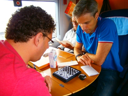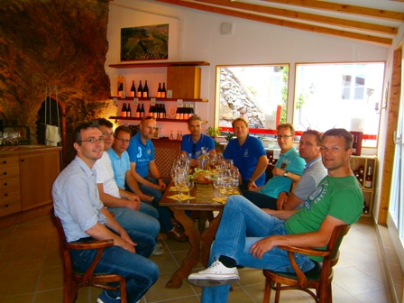 Karlsruhe. Niet iedereen was direct enthousiast over de keuze van organisatieduo Eddie & Klaas. Met de trein nog wel. Vanwege de oranjeloze kwartfinale van het EK verzamelden we al op donderdag in Utrecht, waar het uitgaan niets voorstelde op een potje pim-pam-pet na en de nachtrust voor menigeen te wensen overliet. Zoals gezegd bracht de trein ons op vrijdag naar Karlsruhe, waar het hotel tegenover het station een pluspuntje was. Jammer van de filmopnamen aldaar, toch een storend element. Na vierenhalf uur trein, opgeleukt door Eddie met een digitale fotolijst, werd er vrijdagmiddag direct nog maar een uur treinen aan vastgeplakt voor een gezellige wijnproeverij, inclusief diner. Johan stal de show hier met zijn eigenwijze houding inzake verticaal dan wel horizontaal groeiende wortels.