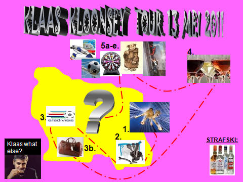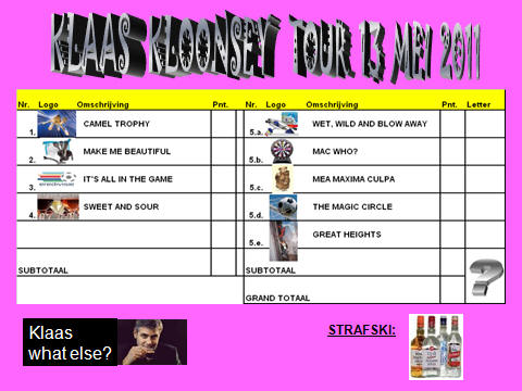 Na een lange, vlekkeloze voorbereiding wordt de dag van Klaas op vrijdag 13 mei georganiseerd in omgeving Tilburg. Door de afwezigheid van stempelkaartmaker Klaas wordt ditmaal Jan W. opgezadeld met de stempelkaart opdracht, waar hij het overigens aardig van af brengt. Eddie maakt het t-shirt en is verantwoordelijk voor het eerste onderdeel, tevens het duurste onderdeel aller tijden: de kameel. Helaas is door enkele 'logistieke' complicaties de race niet in centrum van Tilburg - onder toeziend oog van de Interpoliscollega's - maar in de verder redelijk verlaten tweeverdienerswijk De Blaak.