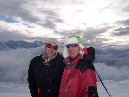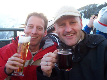Hans: grijpt na lang wachten zijn kans bij de piepkuikens, al is het resultaat wat onduidelijk. Is er zelf wel blij mee. Hoogte- of dieptepunt is echter de lange rode afdaling nr. 16, als de liften op het punt staan om dicht te gaan. Hans heeft afgezien, maar gelukkig de lift nog net gehaald. Al was het dan al ruim half vijf….. Vreemd blijft dat chaperonne Sietse hem in het allerlaatste gedeelte kwijt raakte. Hans voerde zijn inmiddels traditionele Garfield ‘de kat met 7 levens’ act op. Na het mountainbiken bij Arnhem en het raften in Zoetermeer kwam ook in deze editie zijn dodelijk blik van ‘ik kan niet meer’ weer tevoorschijn. 's Avonds bij de apres ski overigens niets meer van gemerkt.