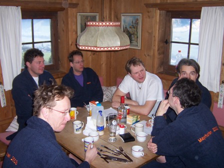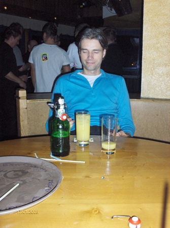 Klaas: rekent naar eigen zeggen af met jarenlange frustratie, al wordt niet duidelijk waarom. Niettemin beleeft Klaas een prima weekend aan de zijde van Jan B. Ook een nieuw duo? Skiën kan goed met een klutsknie. Dieptepunt is het weinig subtiele ‘Anja, wasser!’ in de pizzeria. Het zal niet zo bedoeld zijn, Anja was immers leuk (zie foto). Houdt een goed gevoel over aan Mayrhofgen 2008 en maakt dat onder meer duidelijk met de organisatie van een MTB Sigarengenootschap in maart!