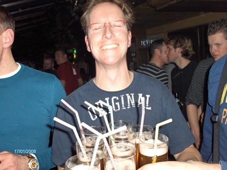 Jan W.: stelt zich als medeorganisator op als de potbeheerder van de groep, en dat gedurende drie dagen. We hebben geen minuut zonder drank gezeten, en dat kun je een prestatie noemen. De hoeveelheid Red Bull was daarbij overigens veel te groot, een verbeterpuntje voor volgend jaar. Wel goed: Fuchzwantschel (ijscupje met slagroom en schnapsje). Heeft uiteindelijk dus meer met de barman geouwehoerd dan met ons, maar dat is nou eenmaal de prijs die je betaald. Werd uiteindelijk beloond met het organisatielidmaatschap voor het leven en minutenlang applaus. Hoogtepunt: limbodansend met dienblad door de Ice-bar. Meest verassende uitspraak: ‘de Horlepiep is zooooo 2007’. Jammer. Opvallend: Jan is wat mediageil zo lijkt het. Op elk filmpje probeerde hij met zijn allerbeste techniek door het beeld te roetsjen om vervolgens na te vragen of dat er niet beter uitzag dat Johan. Competatief duo.