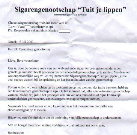 Bijzonderheden: Veel aspirant-leden zijn aanwezig. Ramon voorspelt een carrière voor zichzelf in het plaatselijke schoolbestuur. Een duik in het Zuidlaardermeer, op dat moment vol blauwalg, en in de coniferen van de buren zijn niet zo zeer hoogtepunten, maar meer herinneringen. Ook vermeldenswaard: de oprichting van het Chocoladegenootschap.