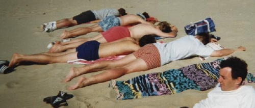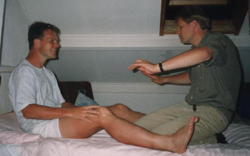 Ramon en Eddie regelden (zie ook de uitnodiging) voor het eerst van tevoren een huis in plaats van een tent. Op Texel, midden in het dorp, in het bruisende uitgaansleven van Texel. Op donderdagavond aangekomen in het rustige café werden we verwelkomd met de opmerking ‘Waarom zijn jullie er voor het seizoen begint?’. Chapeau voor het verkenningwerk van de organisatie (dat met behulp van een historische audit wel hoog van de toren had geblazen). Het gaf ons in elk geval alle ruimte voor het bedenken van de ‘riemenact’. In Texel werd voor het eerst (en voor het laatst) gebruik gemaakt van de videocamera. Gezien alle emoties die zijn vastgelegd – Johan had wat moeite met zijn tiende plaats in het Tommy klassement – is de camera nimmer meer mee geweest. Ook hier: de ontdekking van Boswandeling en een stripteaseact van Jan B. op ‘King of my Castle’. En natuurlijk het paardrijden, we herinneren ons Werner.