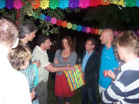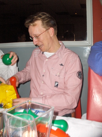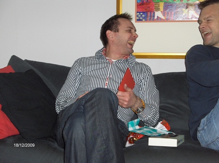 Ook Klaas vond het tijd voor een echt feestje. Samen met Olaf werd ie immers vijftig. Het huiskamer annex tuinfeest werd opgeluisterd met vele vrienden en vriendinnen uit de buurt, plus een waardige, edoch partnerloze afvaardiging van de Guys. Alleen Jan B. (goed excuus) en Sietse (geen idee waarom) ontbraken. Het cadeau (geld voor een zonnebril) werd in dank aanvaard, al was Olaf wel een stuk enthousiaster over zijn Legodoos. Minpuntje was de thuistap, die wel erg snel leeg was. Misschien dat daardoor uiteindelijk geen gebruik werd gemaakt van de gelegenheid om te dansen